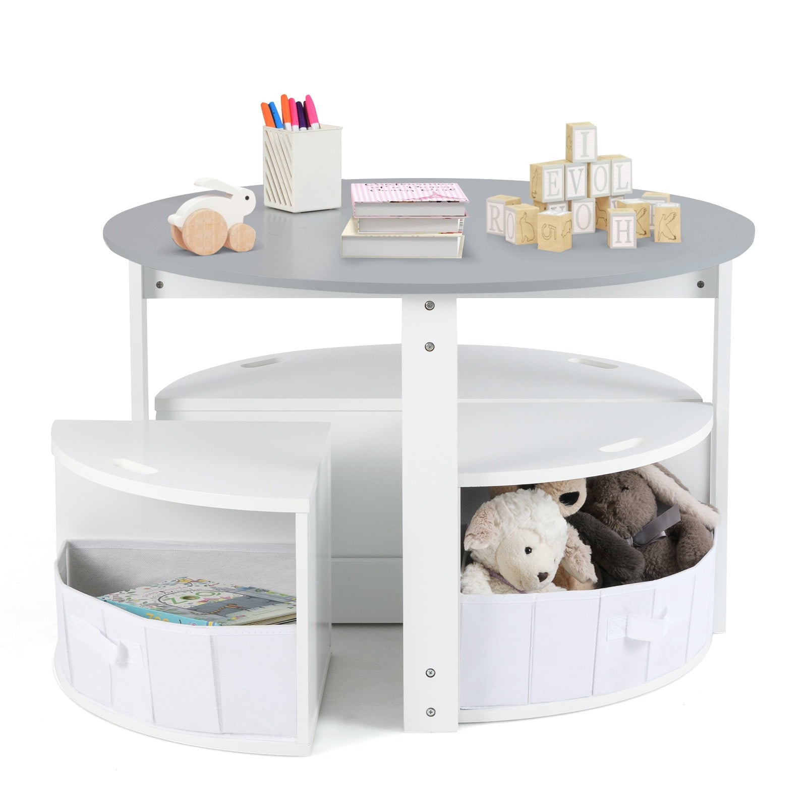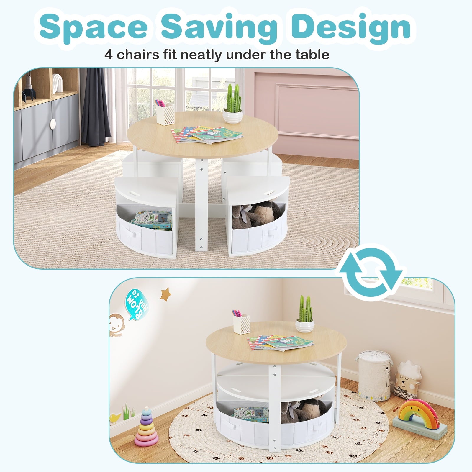 Built-in Storage Space: Each chair of this kids table set is equipped with a fabric drawer underneath, providing convenient storage space for children. These drawers are ideal for storing toys, books, or snacks. With this feature, kids can easily access their belongings while maintaining the tidiness of their play area