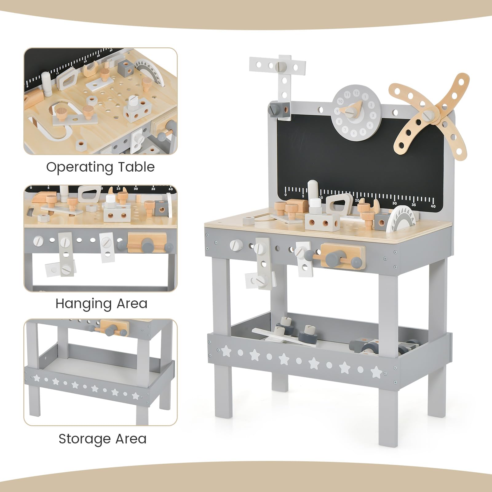 OLAKIDS Tool Bench Set for Toddlers, Kids Wooden Workbench with Blackboard Construction Building Tools and 62 Accessories