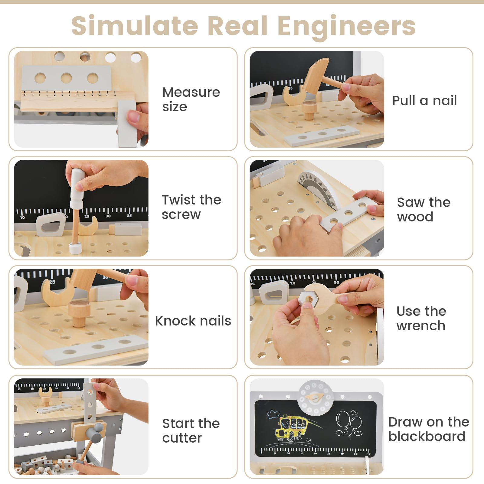 - 💖Perfect Gift for Kids: Ignite your child's imagination and strengthen the parent-child bond through our captivating wooden tool bench toy. This pretend play construction bench toy for children satisfies the curiosity of the engineer career and is the best gift for children's birthday parties, Christmas, New Year and other occasions.