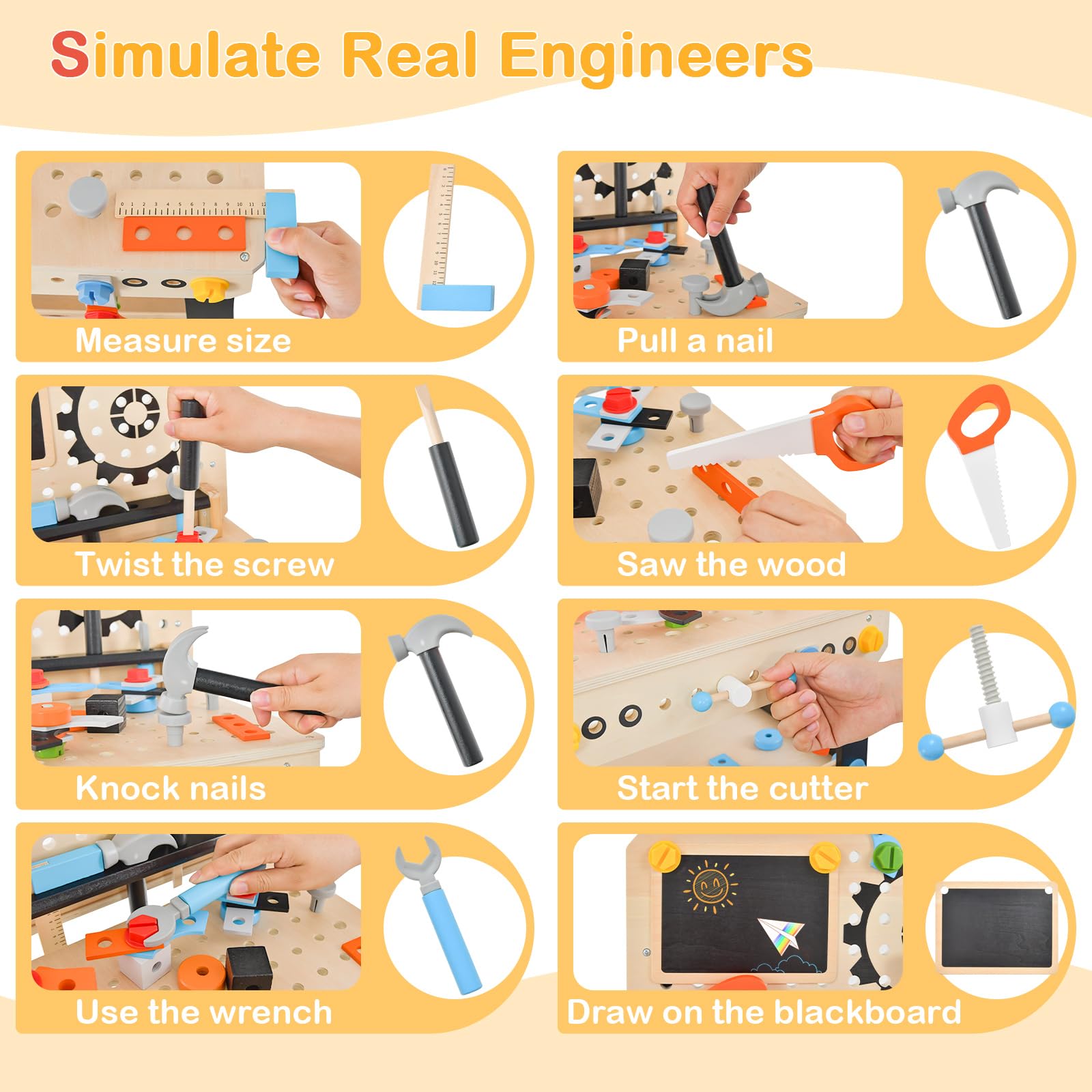 - 🎁Perfect Gift for Kids: Ignite your child's imagination and strengthen the parent-child bond through our captivating wooden tool bench toy. This pretend play construction bench toy for children satisfies the curiosity of the engineer career and is the best gift for children's birthday parties, Christmas, New Year and other occasions.